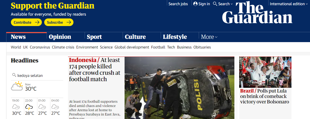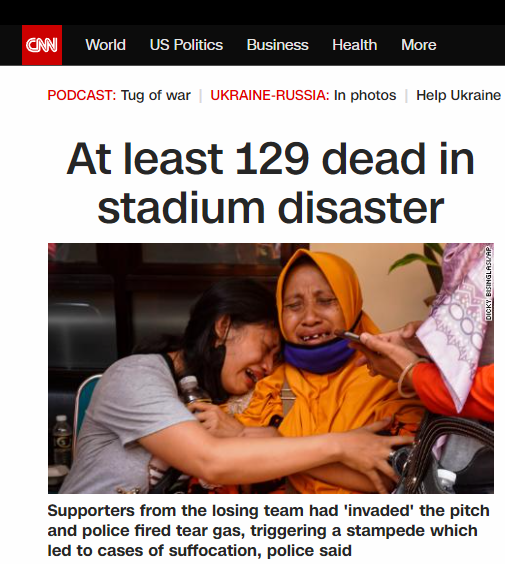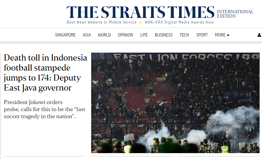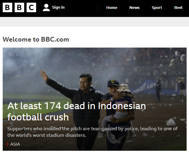 Lebih sedih lagi, kita jadi sorotan dunia internasional. Beberapa media negara lain yang gue tengok nempatin musibah di Kanjuruhan jadi headline. Semoga permasalahan cepet beres. Semoga yang ditinggalkan diberi kesabaran.