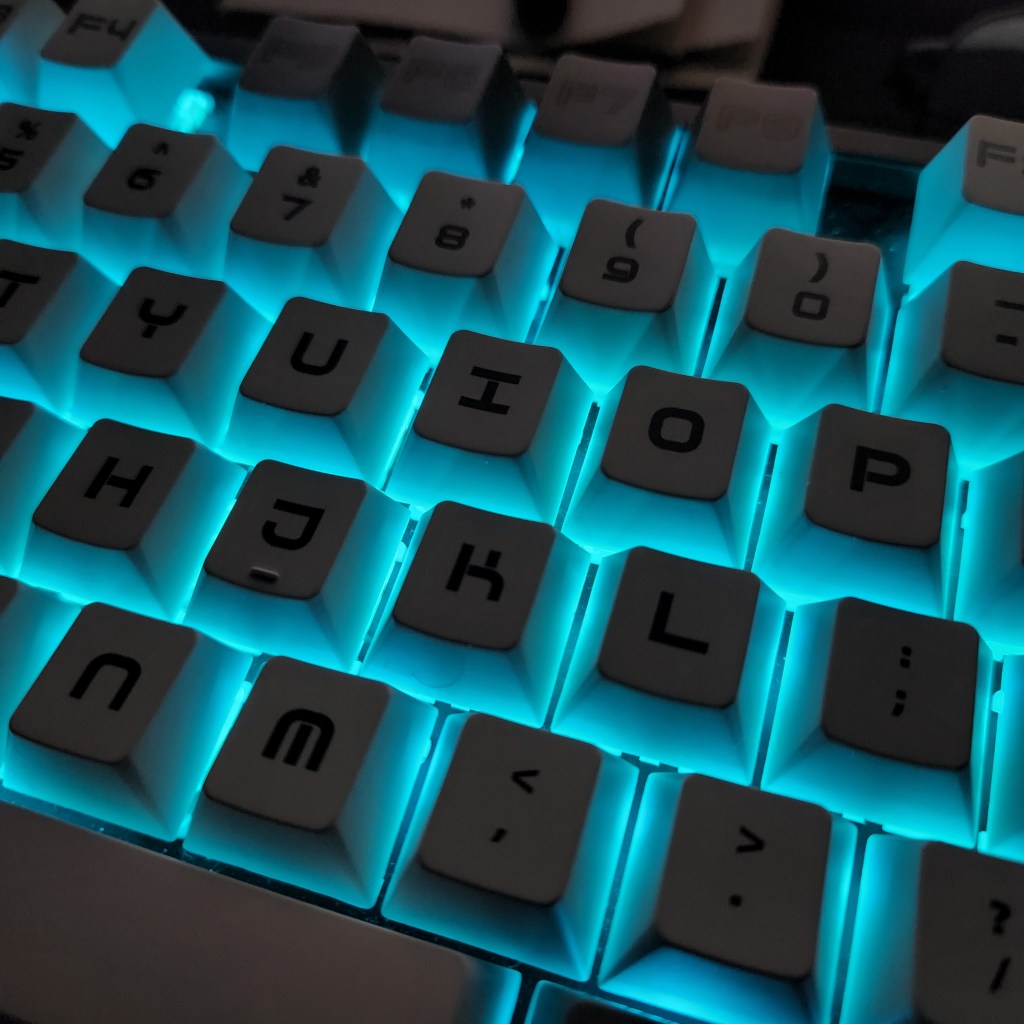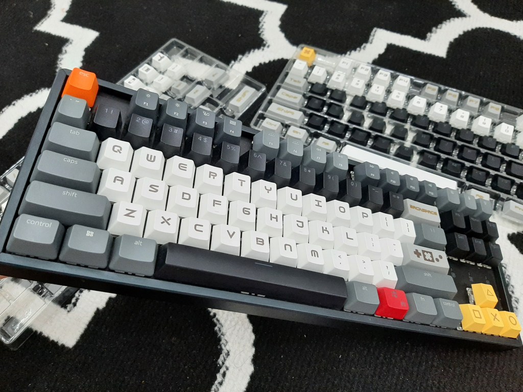 Sampai akhirnya gue putuskan untuk ganti semua lah karena pingin tau penampakan K8 kalo dipasang semua capsnya. Rupanya ok juga. Cuma tombol Esc sama Win kanan yang engga gue ganti.