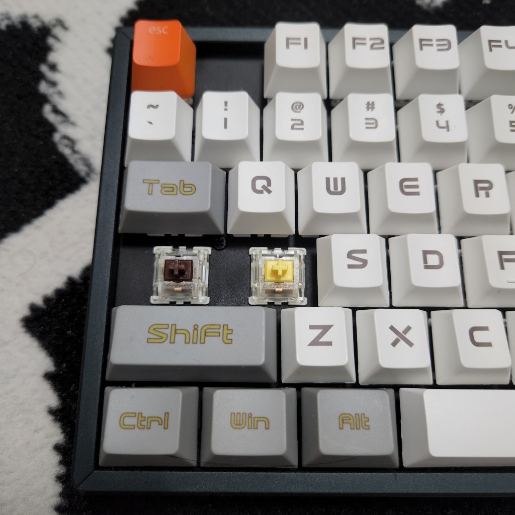 Awalnya kan karena kerjaan gue ketak-ketik, dan switch brown tuh lumayan keras, makanya cobain deh yellow yang katanya agak empuk. Sekalian juga deh lubed, kali aja ngetik jadi lebih nyaman. Switch yellow itu gue pasang di 26 tombol huruf dan 4 tombol panah.